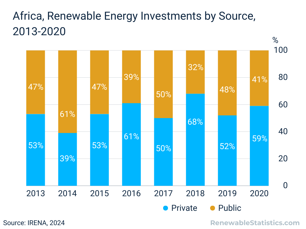 Cite Chart: RenewableStatistics.com. (2024). Africa, Renewable Energy Investments by Source, 2013-2020. Retrieved from https://renewstats.com/region/africa/2024/05/27/africa-renewable-energy-investments-by-source/
