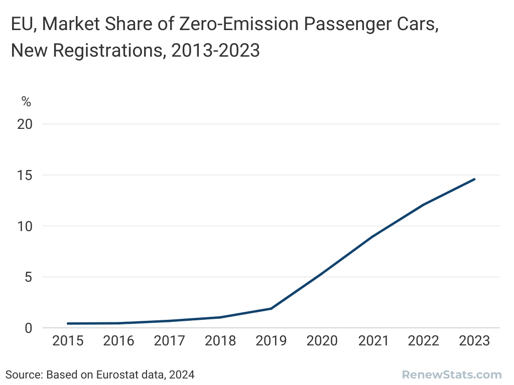 Rapid Growth of Zero-Emission Passenger Cars in the EU (2013-2023)